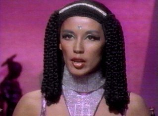 Elaan trägt alle schlechten Eigenschaften einer verwöhnten Göre in sich, und das ist sie anscheinend auch, denn sie ist die Tochter des elasianischen Herrschers. Das läßt sie jeden an Bord merken. Immerhin ist sie so großzügig, daß die Besatzung in ihrer Gegenwart nicht niederzuknien braucht, droht Kirk aber mit der Todes-strafe, als er sie berührt. Petri erweist sich ihr gegenüber auch als ziemlich demütig, hat damit aber keinen Erfolg. Kirk dagegen reagiert auf ihre Wutanfälle sehr ironisch und ist mit dieser Methode aber schließlich erfolgreich, wenn er auch zuerst einem fliegenden Dolch ausweichen muß. Elaan macht denn eine überraschende Kehrtwendung und nimmt sogar Petris Hochzeitsgeschenke an. Am Ende der Episode ist sie ganz friedlich.